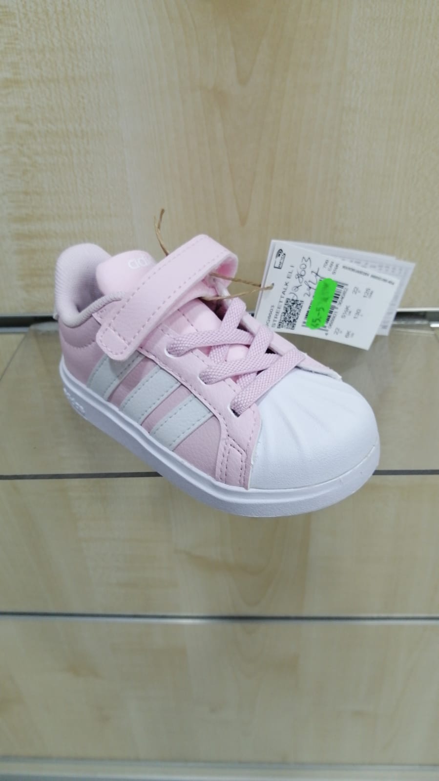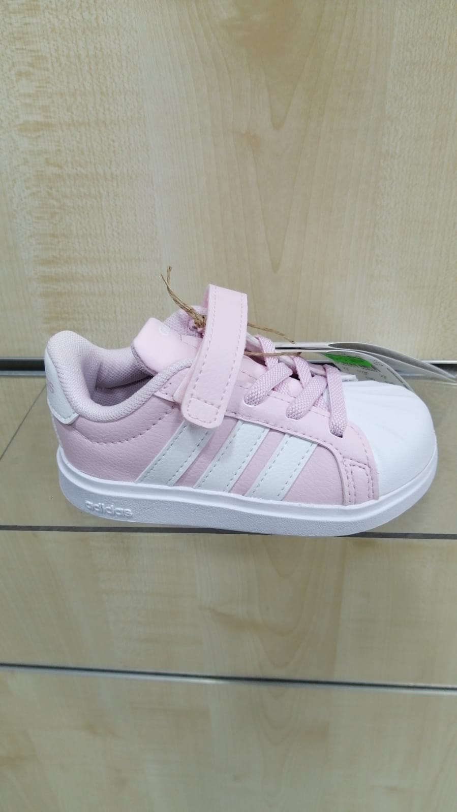Ginnastica Adidas strappo rosa. Scarpa in pelle adatto alle quattro stagioni. La scarpa è una ginnastica leggera, comoda e flessibile, mentre il velcro con gli elastici ottimizza la calzata di questa scarpa.