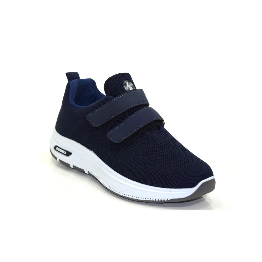 Ginnastica uomo pianta larga doppio strappo marca Canguro. Tomaia in tessuto elasticizzato traspirante, fondo in gomma leggera flessibile e antiscivolo. Disponibilità in colore blù.