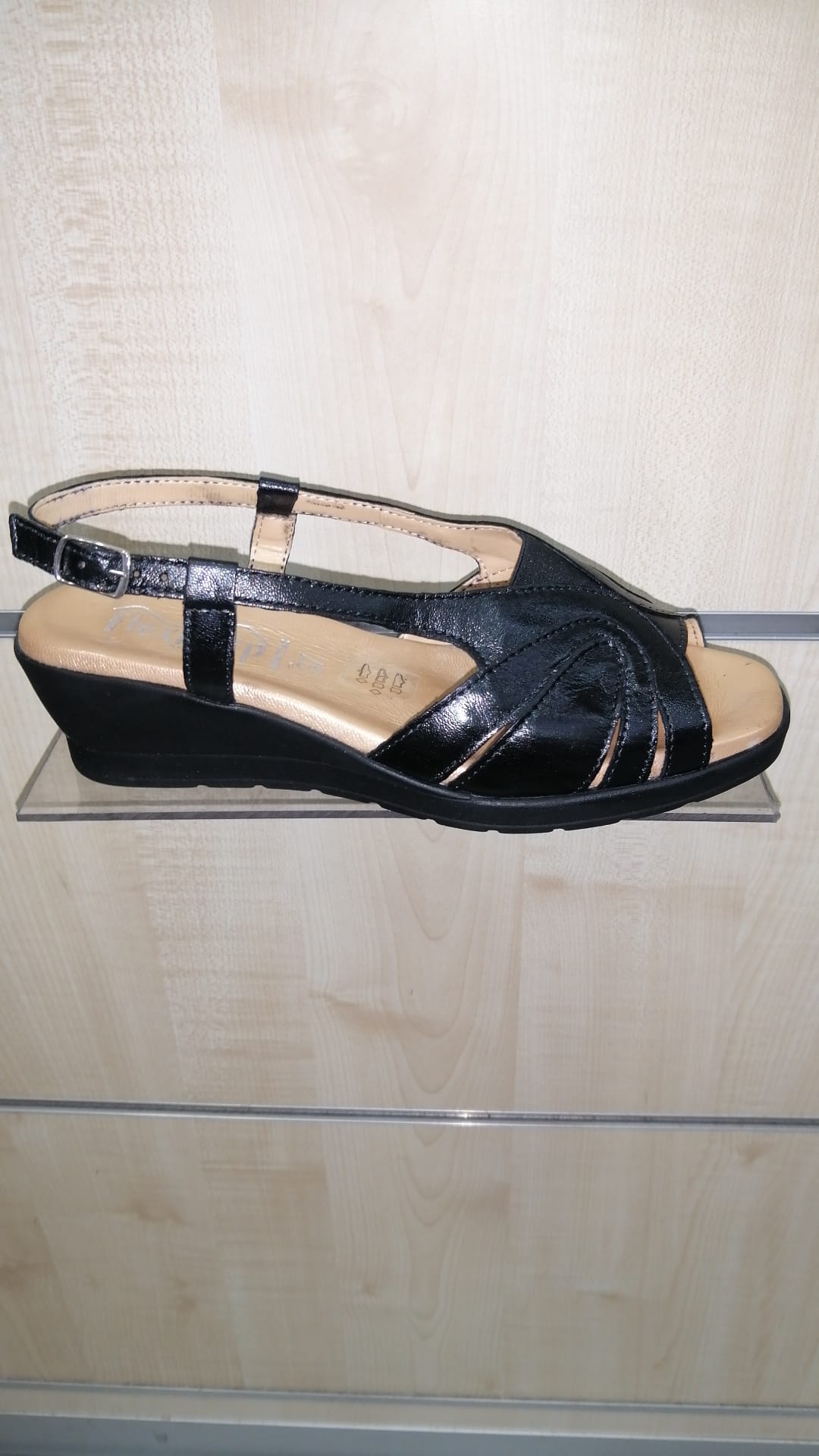 Sandali Donna pianta larga  Flexistep" by Cinzia Soft. Sandalo comodo con pianta larga e plantare anatomico in pelle. Presenta una goccia centrale in gomma antiscivolo e zeppa di