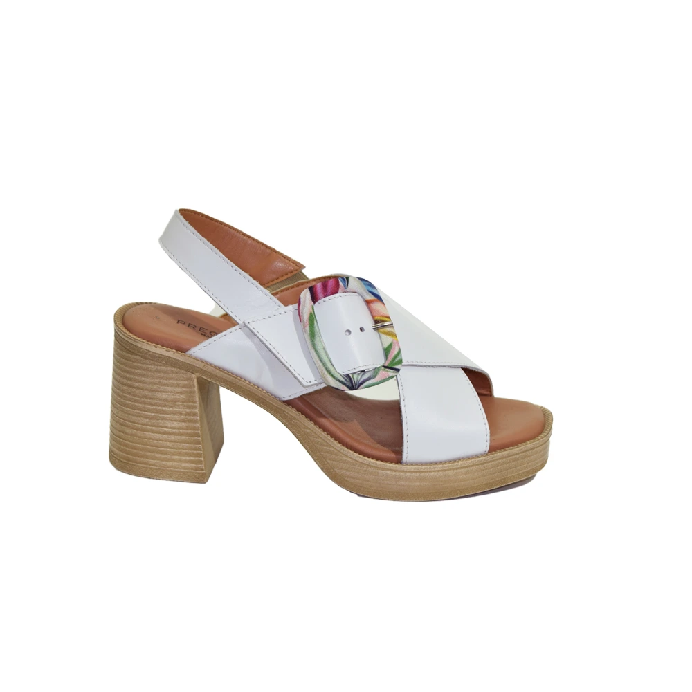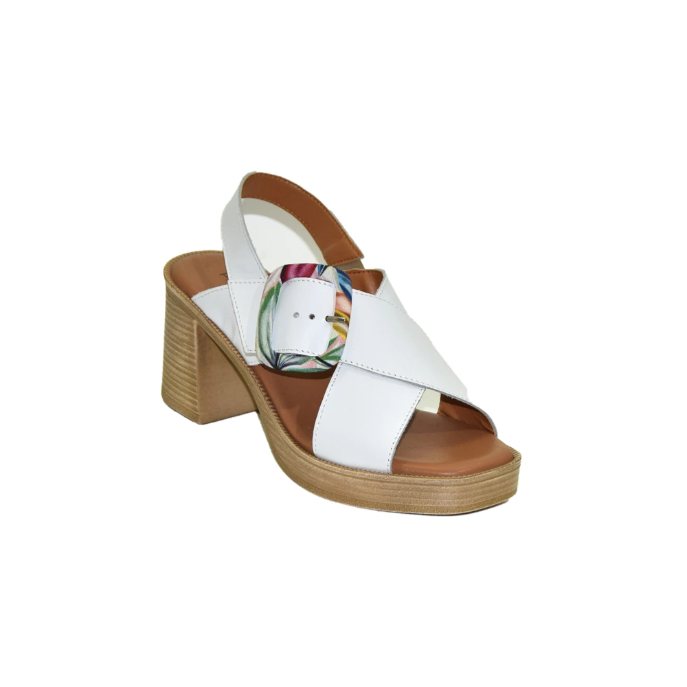 Sandalo tacco staccato alto e largo per donna marca Cinzia Soft . Sandalo molto comodo e stabile in quanto il fondo è composto da un platò di cm.2 e tacco largo e stabile di cm.8 La tomaia è in pelle bianca composta da una fascia a incrocio regolabile con strappo per una facile e ottima calzabilita Il sottopiede e in memory ammortizzante.