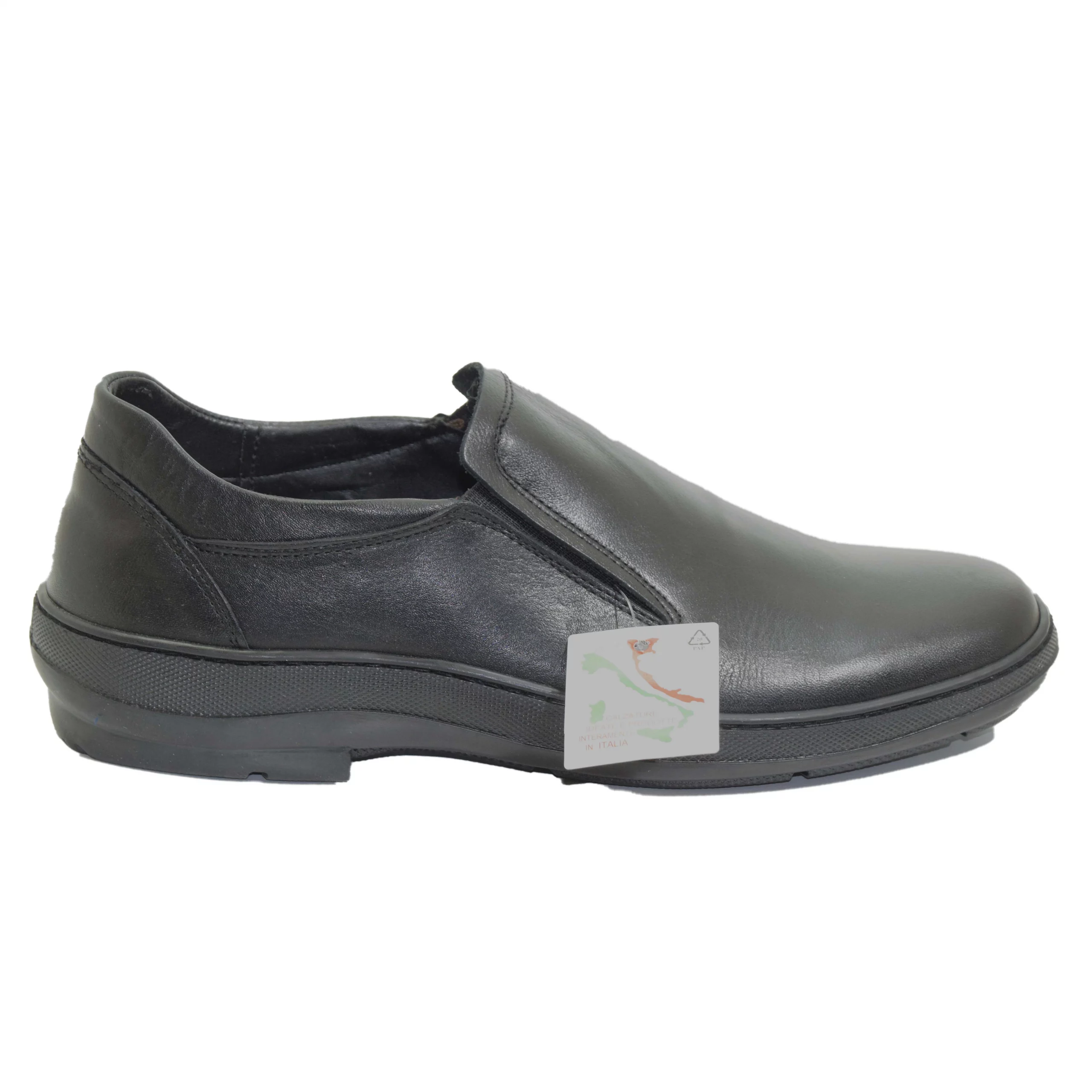 Scarpe a pianta larga leggere. Mocassino con elastici laterali per uomo marca Crispino. Tomaia in pelle morbida e pianta generosa, fondo in gomma flessibile e leggera.