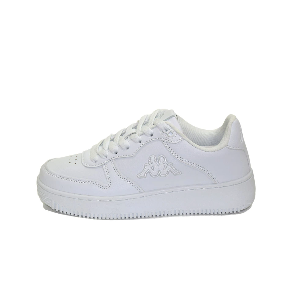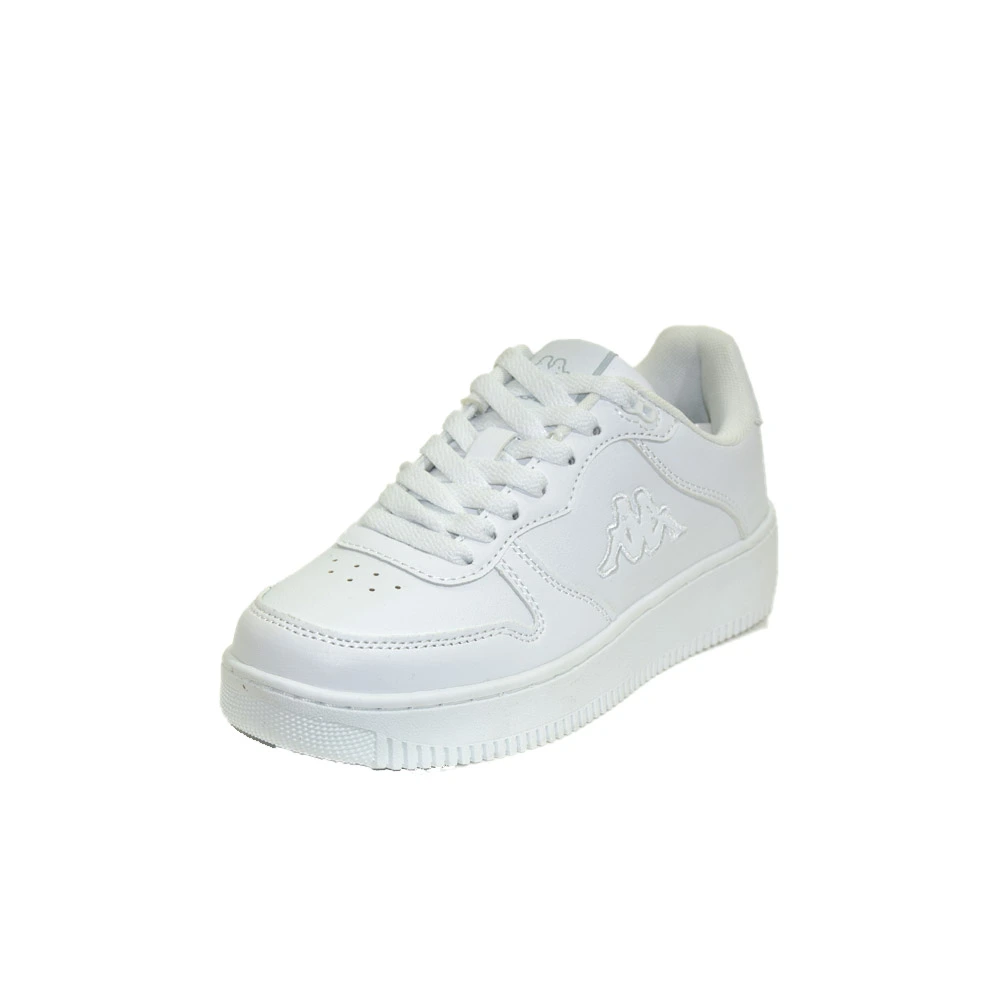 Scarpe ginniche Kappa con allacciatura lunga. Ginnastica con lacci e grande possibilità di calzata comoda anche a piedi generosi sul collo piede. Tomaia in pelle traspirante e punta rinforzata. Fondo in gomma antiscivolo e leggera. Disponibilità in colore bianco. Modello unisex.