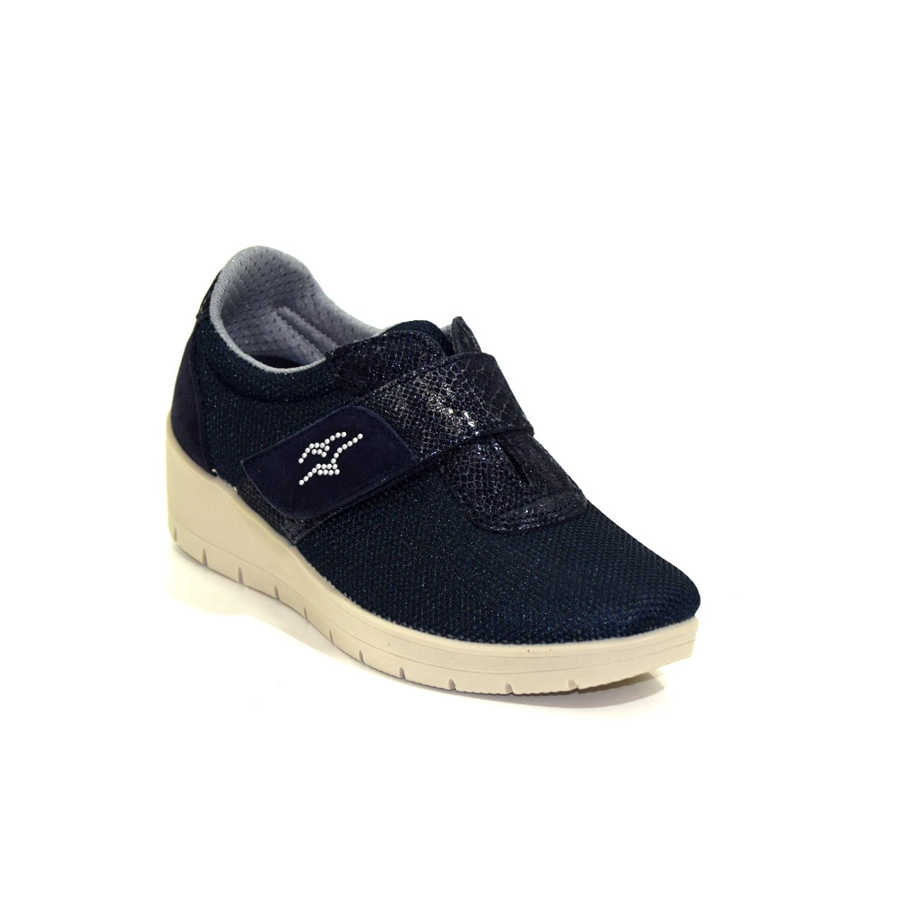 Sneaker Fly Flot strappo unico, tomaia Pelle Camoscio + Tela/Nylon in colore blù tanto confortevoli. Rivestimento interno in Tessuto. Plantare interno Memory Anti-Shock in Tessuto Estraibile