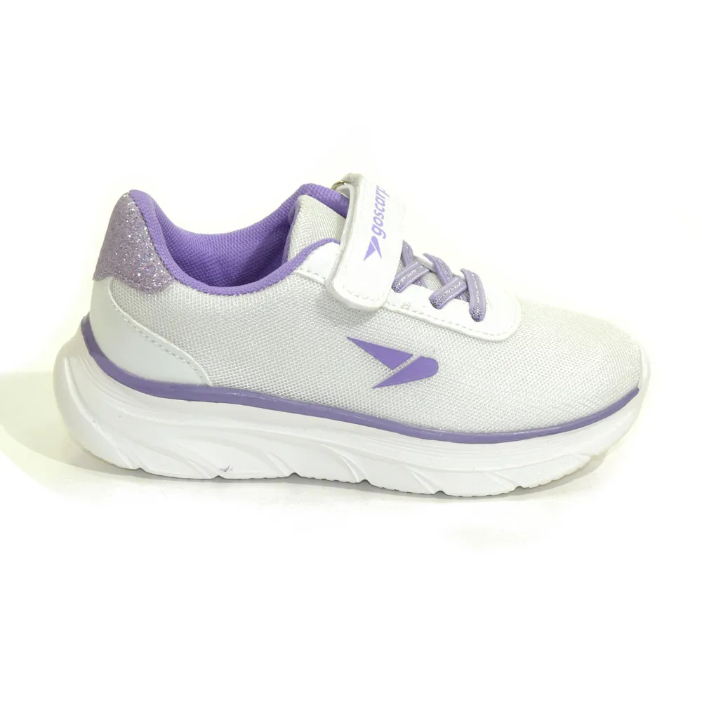 Tennis Tiglio bimba strappo e elastici. Tomaia in nailon bianco traspirante, fondo in gomma leggera flessibile e antiscivolo. Ottima calzata anche a piedi generosi.