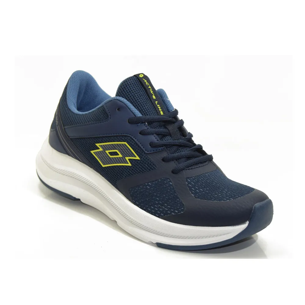 Tennis uomo allacciate leggere e comode. Scarpa leggerissima e avvolgente marca Lotto . Tomaia in tessuto nailon blè e riporti di rinforzo in tinta.Fondo in gomma flessibile leggero e antiscivolo altezza circa cm.5 ammortizzante.